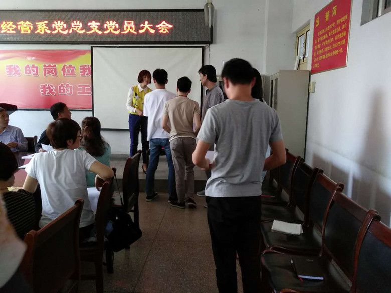 2018年05月07日,经管系党总支在学院会议室召开了全体党员大会,进行了党总支补选支委委员选举,共有28名党员参加了会议。
