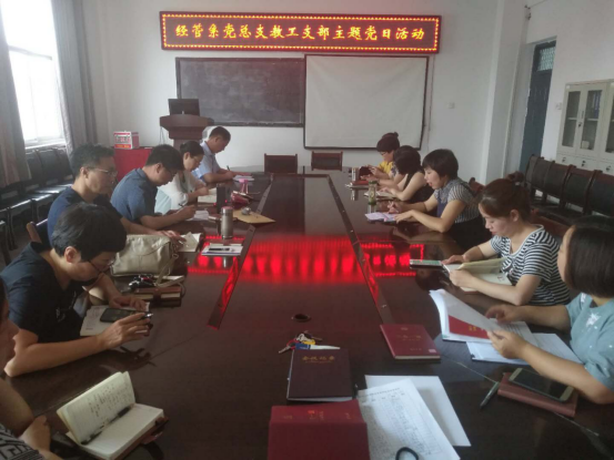 2019年6月17日下午,经管系教工党支部在党员活动室举行了主题党日活动,主题为“弘扬爱国奋斗精神,建功立业新时代”。本次活动由李晓燕、王晓燕、司文杰三位同志为做经验分享和传递,各自结合自身工作岗位内容,分别从教研室建设、课堂教学、员工管理等方面谈感受、找差距、明方向,认真把平凡的事情做好,把大事从小处做好,用真心去关爱员工,全身心投入自身岗位中去,把“小我”融入“大我”,在工作中以奉献和奋斗实现自我价值。