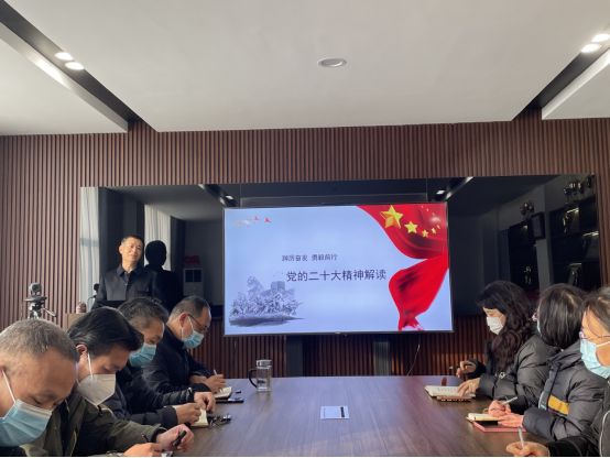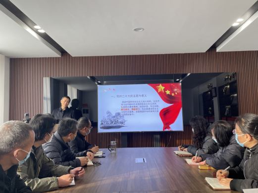 公司党总支书记杨红要求,学习宣传贯彻党的二十大精神,是当前和今后一个时期的首要政治任务。我们要以强烈的政治责任感和历史使命感,坚定历史自信,增强历史主动,敢于斗争、敢于胜利,精耕细作、团结奋斗,切实把思想和行动统一到党的二十大精神上来,要加强组织领导,做好学习宣传,坚持“两个确立”,做到“两个维护”,增强基层党组织的创造力凝聚力战斗力,推动学院各项工作高质量发展。