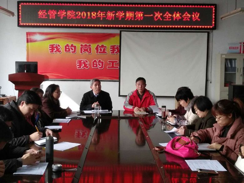 2018年3月3日上午10点,bw必威西汉姆联在学院三楼会议室召开了新学期的第一次全体教职工会议,学院经理卢国红、书记董永红、副经理赵春青、副经理李玉琪及全体教职工参加了会议。