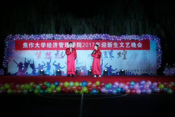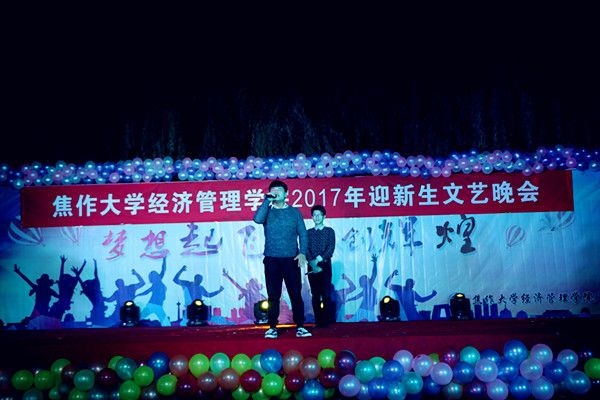 晚会在火热的开场舞中拉开了帷幕,五彩的灯光下这群舞者们活力四射的表演,为晚会营造了热烈的气氛。“音乐小青年”刘佳强带来的独唱《追梦赤子心》,高亢的音乐点燃了在场的每位同学的激情,紧接着诙谐的小品,劲爆的舞蹈,动听的合唱为观众呈现了丰盛的视听盛宴。集体朗诵的《致橡树》像一支古老而又清新的歌曲,拨动着人们的心弦,把整个晚会推向了高潮!整场晚会精彩不断,高潮迭起,赢得台下阵阵掌声,欢呼声一浪高过一浪。祝发润学长的一首《梦中的阿西里西》包含了深情的演唱,为本次迎新晚会画上了一个完美的句号。
