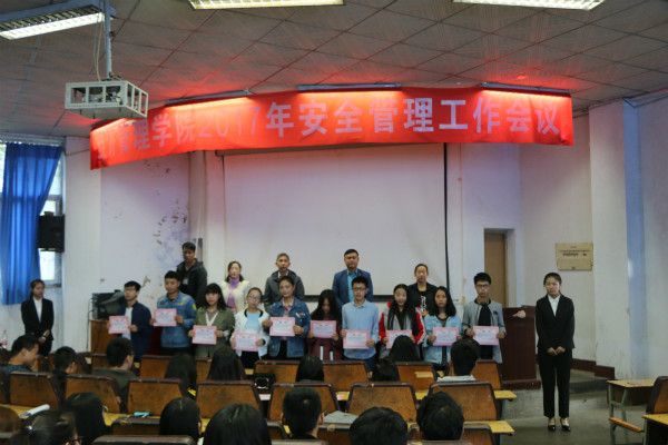 会议伊始,党总支书记董永红作安全管理总结以及宣读关于对2016级优秀安全管理员的表彰决定,随后为优秀安全管理员颁奖。颁奖结束后,优秀安全管理员代表刘舒燕发表演讲,提出要增强安全意识,创建平安老员工活。大会进行第三项,经理卢国红作《安全管理工作会议报告》,提出“两层次”、“两责任”、“两核心”的工作思想。要求同学们要加强对“校园贷款”、“诈骗”、“心理疾病”的防患意识,并对新学年的工作计划做出展望。最后,副经理李玉琪宣读《安全月宣传活动方案》,宣布公司为期两周的安全活动周正式开始。会议在大家热烈的掌声中落下了帷幕。