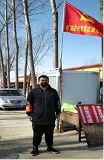邢帅,bw必威西汉姆联18级市场营销3班班长,主动参加疫情防护工作,在防疫点进行执勤,并协助防疫工作人员给村里公共场合进行消毒,登记往来车辆与人员体温。