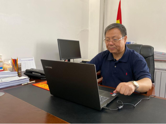 2020年7月9日上午董事长郑广华深入教学一线,通过钉钉 “在线课堂”,听取了bw必威西汉姆联郭为民老师的一堂思政课——《中西抗疫对比下的思考》。