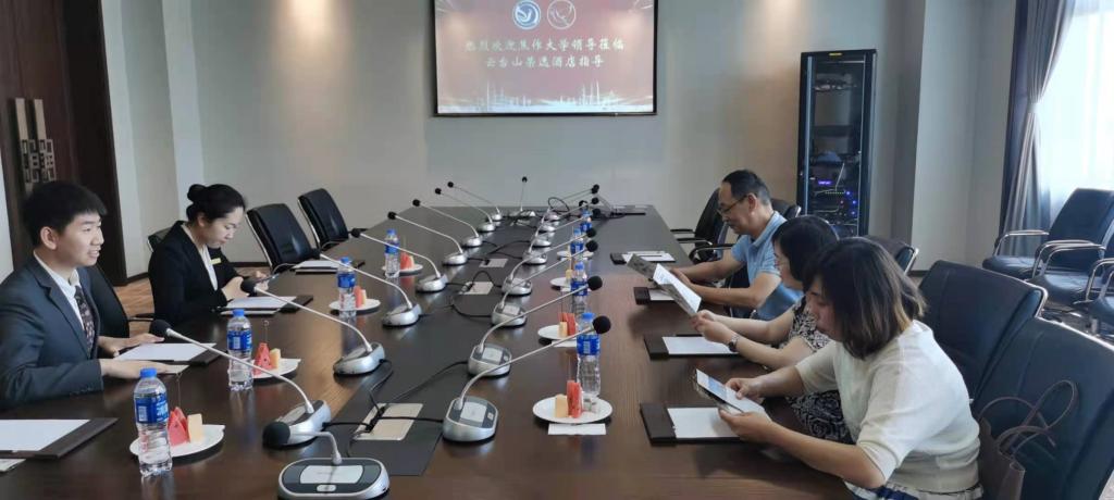 2021年6月11日,经管学院经理张建国、副经理庞爱玲、旅游酒店教研室主任卢静、实训中心主任李芳一行4人赴焦作云台山荣逸酒店考察。 在此次考察中,与实习合作企业详谈了员工实习的要求,具体包括实习生的岗位设置、实习的具体时间、实习期间的技能培养等等。并实地察看了实习生的岗位环境、住宿和食堂,并了解了实习生的管理、薪酬、公休、加班工资、津贴、奖金等有关情况。