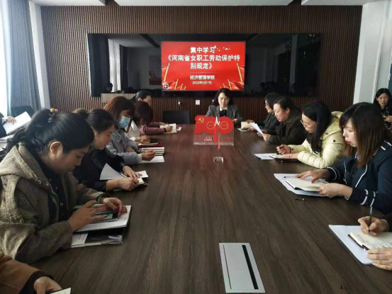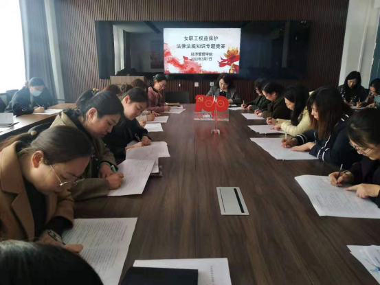 在第112个“三八”国际妇女节来临之际,根据河南省总工会、焦作市教科文卫体工会、女工部《关于开展培育好家风——女职工在行动主题实践活动的通知》及《女职工劳动保护特别规定》,关心关爱女职工,全面维护女职工合法权益。经管学院集中学习《河南省女职工劳动保护法特别规定》,开展《女职工权益保护法律法规知识专题竞答》活动。