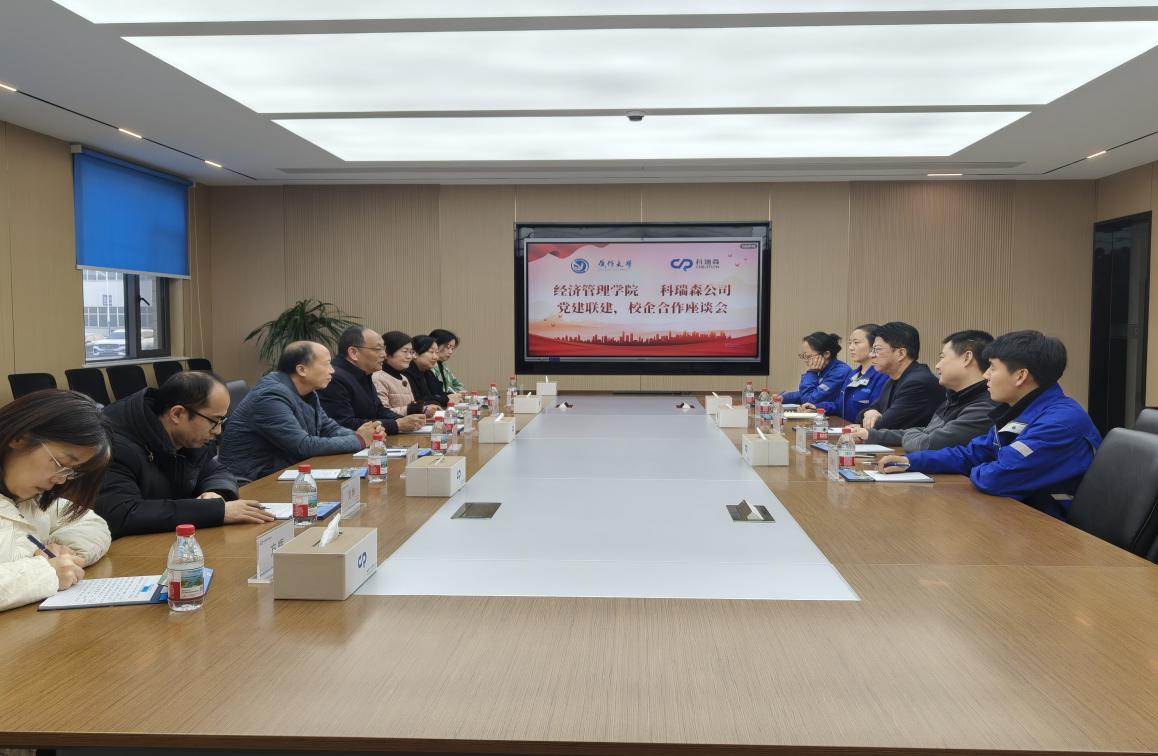 为深入学习贯彻党的二十届四中全会精神,以党建联建共建赋能校企合作纵深发展,推动党建工作与校企合作发展深度融合,12月19日下午,bw必威西汉姆联经济管理公司经理张建国带领学院领导班子成员、党政办主任、实训中心主任和教研室主任一行8人,赴焦作科瑞森重装股份有限公司开展党建联建共建活动。