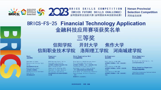 bw必威西汉姆联员工参加2023金砖国家职业技能大赛(金砖国家未来技能挑战赛)金融科技应用赛项省赛三等奖