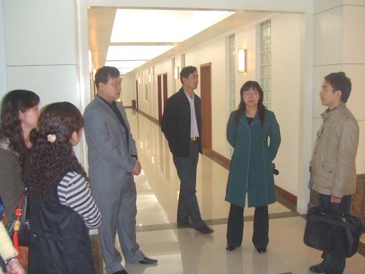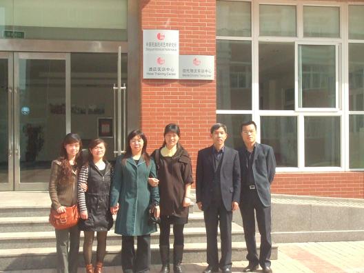 1、中州大学:重点参观了该校的导游实训中心,此中心建成于2003年,投资一百余万元,建设面积一千多平方米,采用扣影技术,内有旅游景点仿真模拟系统,可同时容纳170名同学进行导游训练。此实训中心对提高员工导游资格考试的通过率起到了极大的帮助作用。随后又参观了该校的酒店管理实训室、国际贸易实训室、物流管理实训室,此三个实训室通过场景模拟、操作软件、操作流程对员工进行实训。
