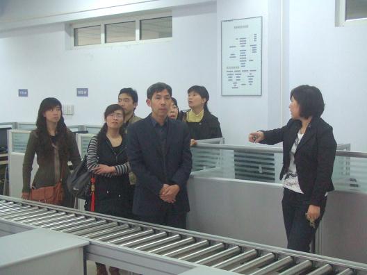 2、河南商业高等专科学校:重点参观了该校的物流管理实训室,此实训室和中州大学有相似之处,都是注重整个物流管理流程的训练,投资大约在80~90万元之间,有自动化存、检货系统、模拟超市、模拟集装箱等,有4、5台联网计算机,有物流系统操作软件。