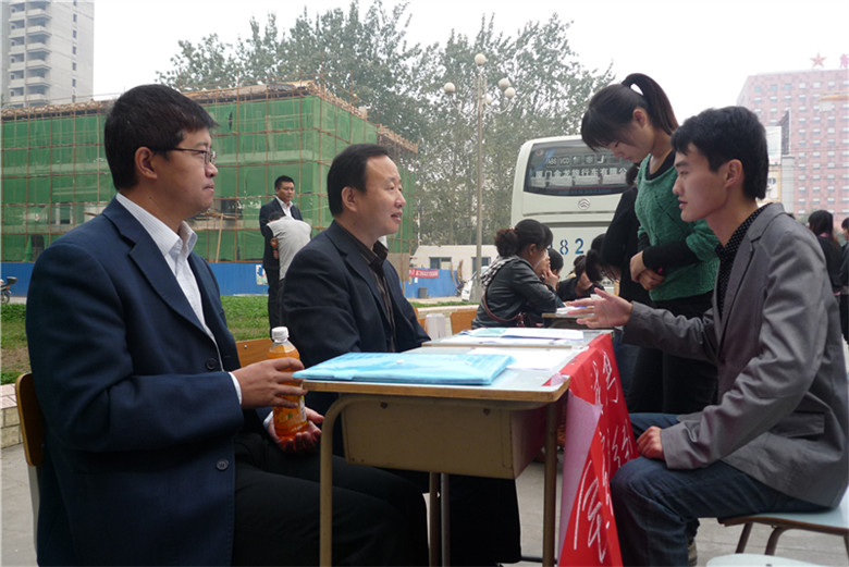 8点钟,大三员工便早早就来到教学楼前,参加招聘的单位陆续而来。一会儿时间,招聘会现场人来人往,招聘单位前面门庭若市。前来招聘的单位很多,像太平人寿、中国电信上海分公司、河南腾达物流等企业。招聘期间,焦书记等亲临现场的领导,向各招聘单位了解招聘详情,给同学们提出指导意见,以便更好地让员工们就业。焦书记还根据目前的就业形势,分析和介绍了往届毕业生的就业情况,要求同学们正确地认识自己,积极创造就业机会以乐观的心态迎接未来的挑战。