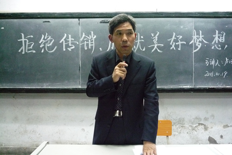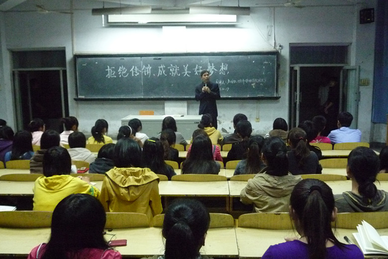在讲座过程中,卢经理为我们详细讲解了传销与直销的定义与区别,并为我们进行了案例分析,呼吁我们老员工一定要对传销有个清醒的认识,决不能轻易地上当受骗,走上传销的不归路。他指出,老员工首先要正确学会识别什么是传销行为;其次要拒绝传销的诱惑;再次,要掌握非法传销的规律,从而避免掉入传销的陷阱;最后万一被非法传销组织控制,要妥善处理、尽早脱身。卢经理希望在座的同学认真体会此次讲座的意义,提醒即将走上就业的员工一定要懂得如何分辨传销组织,并祝愿所有同学都能有美好前程。此次讲座在同学们热烈的掌声中结束。