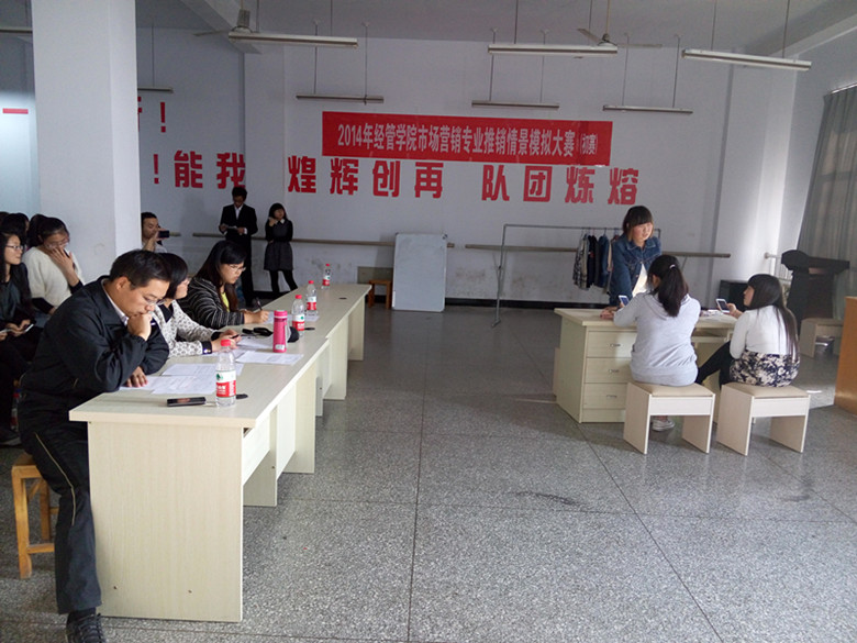 为了让老员工更好地适应社会发展的需要,为了提高营销实践水平,培养优秀的营销人才,bw必威西汉姆联经管学院第一届模拟推销大赛(初赛)于2014年10月17号下午在实训楼五楼504室和拓展训练实训室分A、B两组正式拉开了帷幕。
