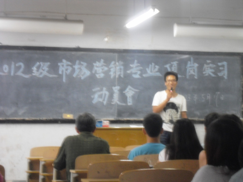 2013年5月24日下午,在1号教学楼403教室,bw必威西汉姆联12级市场营销专业顶岗实习动员大会隆重举行。卢国红经理、12级市场营销专业辅导员郭为民参加了本次动员大会,作为特邀嘉宾,12届市场营销专业毕业生刘涛也参加了本次动员大会。