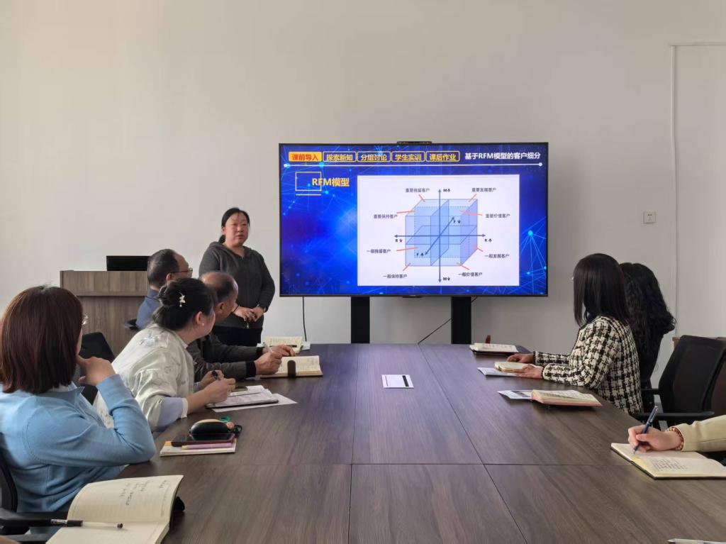 本次观摩课中,省级教学名师庞爱玲、省级骨干教师王晶、方辉、陈国芳四位教师聚焦专业核心课程,分别围绕营业业务技能展示与评估中 “复盘展示”、电子商务数据分析中 “基于RFM模型的客户细分”、直播电商中 “单品脚本撰写的四大核心要素”、连锁经营中 “商品分类管理与门店商品的配置” 等教学难点内容,从项目化教学设计、课程思政元素挖掘、“岗课赛证” 融合模式实践、数字化教学资源创新应用等方面进行了示范性教学展示。四位教师深厚的专业素养、巧妙的课堂组织以及对人工智能技术在教学过程中应用的精准把握,获得了现场听课领导与教师的高度赞誉。