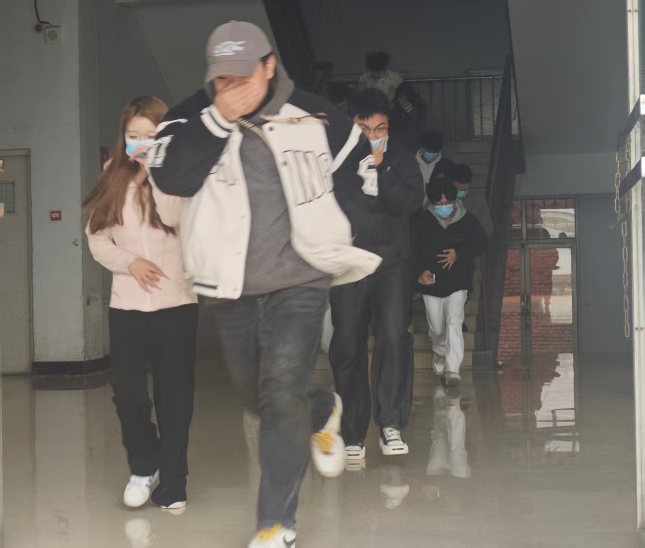 应急过程全方位模拟 本次演练覆盖学院各专业员工代表、辅导员及实训室管理人员,以“实战化、全流程”为原则,模拟真实火灾场景,全方位检验应急响应、疏散逃生等关键环节的实操效果。