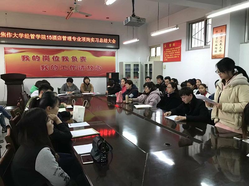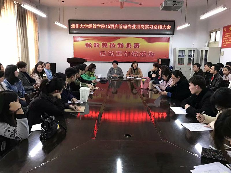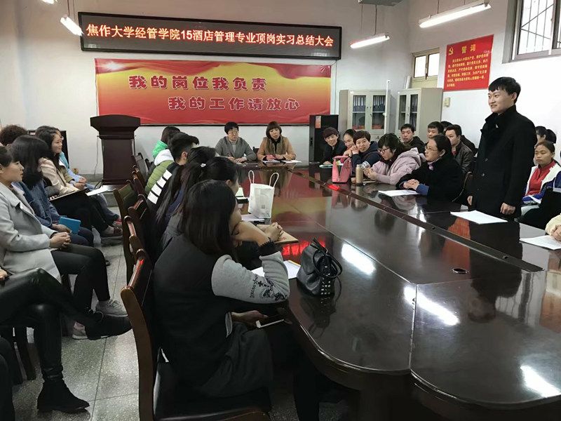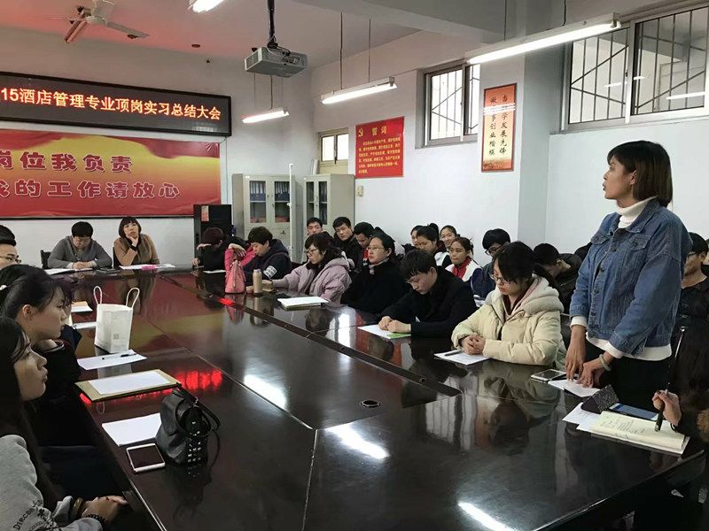 为进一步做好公司2015级员工顶岗实习总结工作,让员工进一步明确顶岗实习的意义,3月20日,公司在会议室召开2015级酒店管理专业顶岗实习总结大会。顶岗办负责人范莉、旅游与酒店管理教研室全体教师、2015级酒店管理专业员工参加会议。