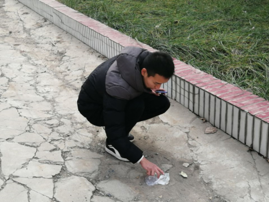志愿者们进行合理分配后,他们相互配合,相互帮助,积极的参与到本次的校园清洁中。志愿者们带上了垃圾袋及一些工具,到指定的区域进行清洁。打扫过程中,志愿者们仔仔细细的将路面上的垃圾甚至是墙角和花池里的垃圾捡了起来,可见志愿者们认真负责的工作态度。最后,在志愿者们共同努力下,校园面貌焕然一新。
