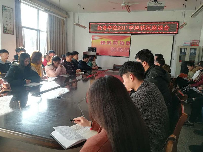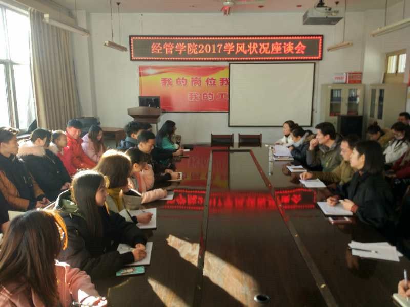 为了响应学校“学风建设月”活动,加强公司的学风建设,公司于12月11日在学院会议室召开2017年学风状况座谈会,参加本次座谈会的有学院副经理李玉琪、辅导员代表王波、王丽、刘建民及全体员工代表,学工办主任王晶主持本次会议。