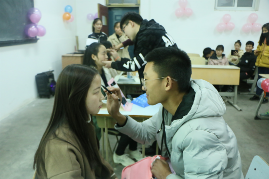 主持人为大家介绍了本次化妆大赛的规则,化妆大赛新颖的地方是男生为女生化妆。首先,每组同学依次入场,他们坐在指定的位置上,主持人宣布比赛开始,每组比赛时间为十分钟。比赛时间结束,各位选手马上停止自己手边的一切工作站好,女生面向评委和观众,评委开始打分和点评。本次比赛共有四组,每一组的表现都很精彩,每位男同学都很出色,显然比赛前同学们就已经做好了充分的准备。在评委打分的时候,同学们纷纷上台献上自己的才艺,为本次活动增添了不一样的色彩。本次比赛的最终结果是:一等奖302寝室、二等奖309寝室、三等奖506寝室。