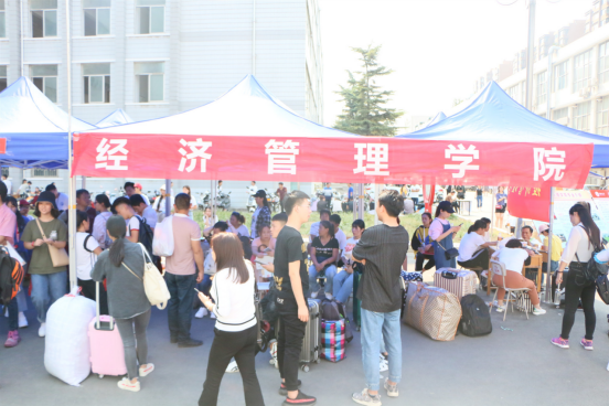 为做好迎新工作,早上七点钟,员工会成员和青协志愿者的同学们已经来到迎新地点进行布置,半个小时后全部迎新队伍便已全部到齐“严阵以待”。他们有的在门口辛苦地举着院旗接应,有的在接待处耐心地接受家长和新同学的咨询,有的微笑着为学弟学妹办理手续还有部分同学帮助新生们完成注册,领取生活物品,以及入住宿舍等工作。志愿者们满腔热情,为了让新生尽快的熟悉新的环境,更快的融入学校的生活,志愿者们向新生们简单的介绍了学校的楼层分布,为他们将来的生活提出了自己切身的建议。来来回回的接送工作也并没有使志愿者们懈怠于自己的工作,他们热心的欢迎每一位新生的到来,帮家长员工们搬运行李,让刚踏入大学校园的新生们感受到了不一样的温暖。