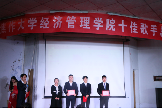 经过激烈精彩的半决赛选拔,共有十二位选手成功晋级到决赛。首先,老师与选手们共同歌唱《我和我的祖国》,十佳歌手总决赛正式拉开了帷幕。选手们陆续上台演唱,歌声慷慨激昂,温暖心头。比赛期间还进行了令人激动的猜歌游戏,同学们的积极参与舒缓了紧张的比赛气氛使场面异常活跃。经过将近两个小时的激烈角逐,选手马德海同学夺得冠军,选手韩雨恒与李志霖同学分别为亚军和季军。然后副经理李玉琪与团总支书记王波共同为参赛的选手颁发证书,最后大家一起合唱《歌唱祖国》并合影留念,活动到此圆满结束。