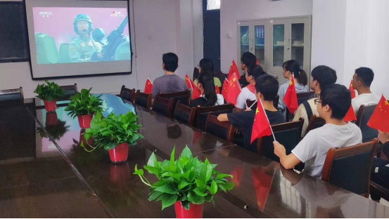 在团总支的组织下,在校员工有序就坐,开启了这次阅兵之旅。首先进行阅兵式,受阅部队在长安街列阵,光荣接受习近平主席的检阅。随后由15个徒步方队、32个装备方队、12个空中梯队、将军领队、战旗方队、武器装备、联合军乐团组成的分列式依次通过天安门广场。同学们无不被这阅兵盛典所震撼,纷纷呐喊着挥动手中的国旗,以表达自己的爱国情怀。然后进行以共筑中国梦为主题的庆祝中华人民共和国成立70 周年群众游行活动,群众游行以时间为轴线,分为“建国创业”“改革开放”“伟大复兴”三个部分,有约10万名群众、70组彩车组成的36个方阵和3个情景式行进。最后阅兵活动在“祖国万岁”的方阵中落下帷幕,而同学们依然意犹未尽,不舍离开。