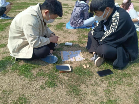 2022年4月2日下午,首轮象棋比赛在北校区足球场草坪上举行。春风和煦,艳阳高照,各位选手按照疫情防控要求,拉开距离,席地而坐。在裁判的监督下,16名选手分成两组,采用循环赛制,经过激烈拼杀,决出了各自在组内的名次。