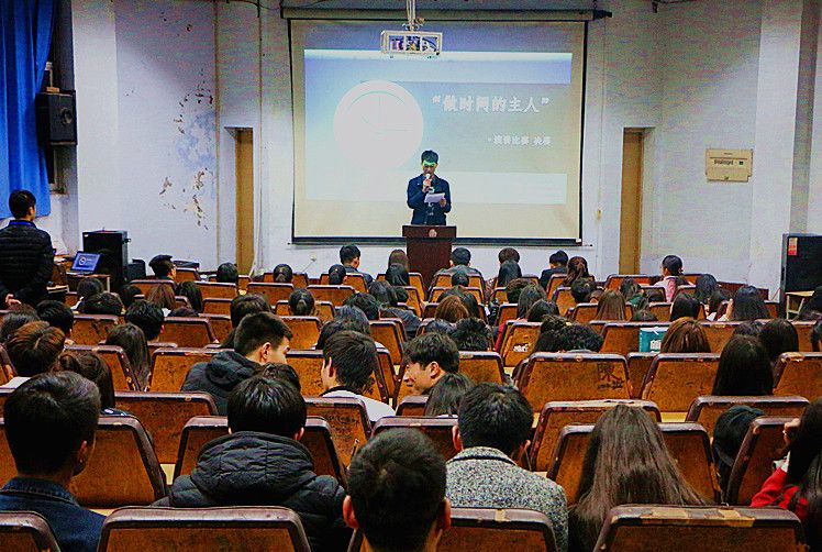 比赛由团总支副书记孙航对时间的分化与总结拉开帷幕,第一位娇小女生的演讲,先给大家带来了不一样的对时间的态度看法,紧接着第二位演讲者用事例、名言给大家诠释着老员工活做时间主人的重要性。是啊,时间匆匆,它不会因何人何事而停息,用莎士比亚的话来说,抛弃时间的人,时间也抛弃他。比赛如火如茶的进行着,到第九位市场营销专业选手演讲“和时间赛跑”为题的发言稿时,比赛进入了高潮,同学们都用最热烈的掌声来鼓舞回应着演讲者的精彩演讲,直到第十七位选手的演讲结束,大家还依旧沉浸在如何做好时间主人这一氛围中,做好时间的主人,珍惜每分每秒。
