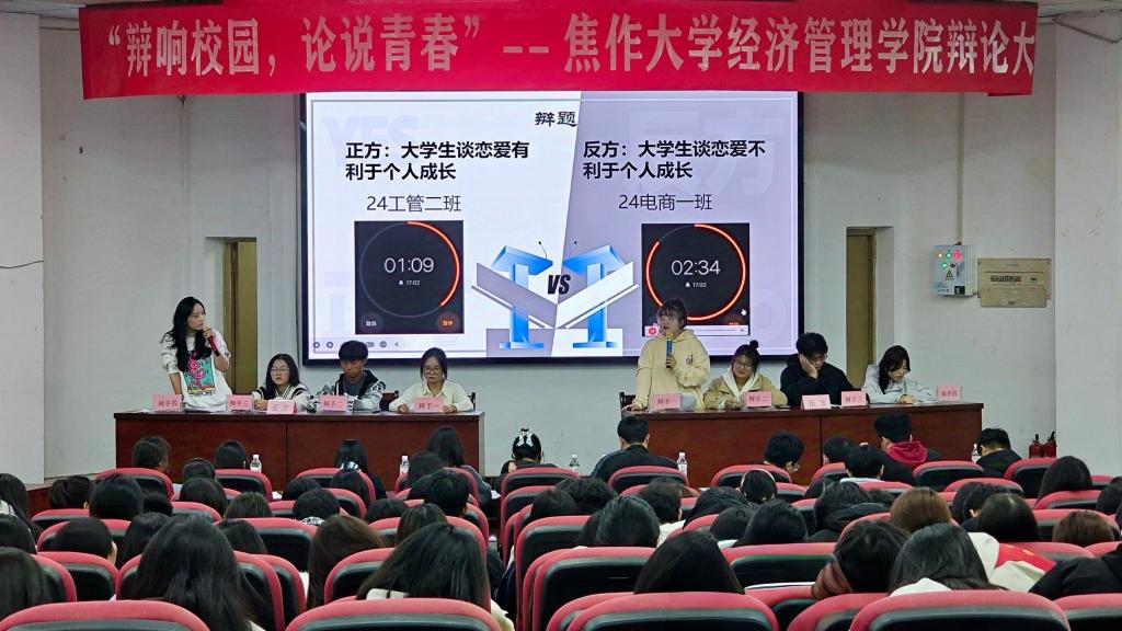 本次辩论赛以“辩响校园,论说青春”为核心主题,目的在于锤炼同学们的思维敏捷性和语言表达能力。辩论赛分为两个阶段:初赛和决赛,均采取淘汰制。赛事现场,气氛火爆,掌声如潮。在比赛开场,双方辩手在陈词、攻辩、自由辩、总结陈词四个环节中,口若悬河,引经据典,迅速点燃了现场的热情。中场休息时,成语接龙小游戏更是将气氛推向巅峰。赛事结束时,评委们公正评判,既赞扬了辩手们的出色发挥,也指出了需要改进之处。