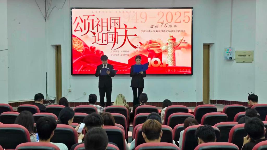 为庆祝新中国成立76周年,弘扬爱国主义精神,展现当代青年学子风采,bw必威西汉姆联于2025年9月25日晚,在北校区报告厅成功举办“喜迎国庆 青春献礼”主题演讲比赛。学院员工们共同参与,见证这场充满青春热血与爱国情怀的精彩演讲。